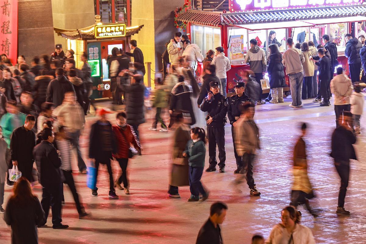 3月3日,甘肅省蘭州市公安局七里河分局民警輔警在蘭州老街執(zhí)勤值守。