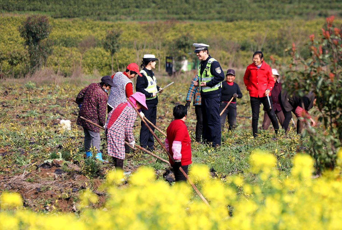 3月6日,安徽省舒城縣公安局交管大隊(duì)聯(lián)合舒茶派出所走進(jìn)舒茶鎮(zhèn)石塘村茶地,為群眾送上“交通安全錦囊”。