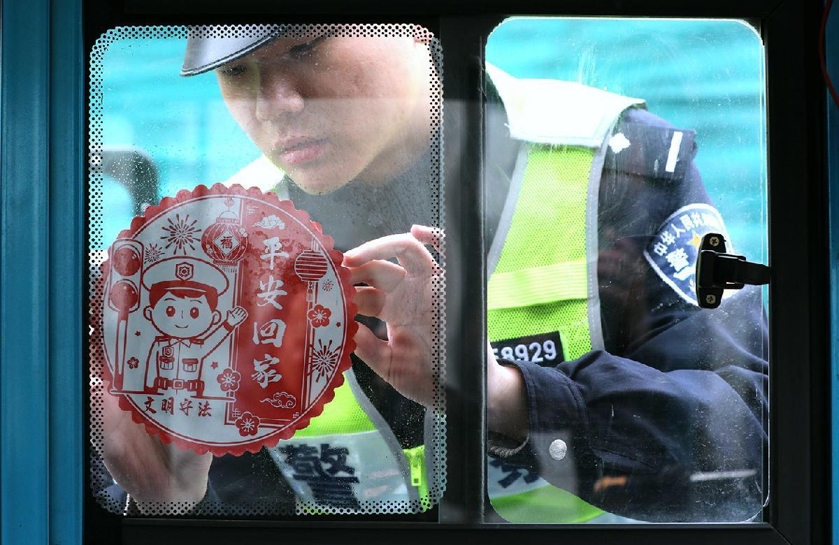 2月2日,是2026年春運(yùn)首日。安徽寧國市公安局交管大隊執(zhí)勤民警向過往車輛發(fā)放“平安回家”窗花和“溫馨提示”單,把一路平安的誠摯祝愿送給每位駕駛?cè)藛T。