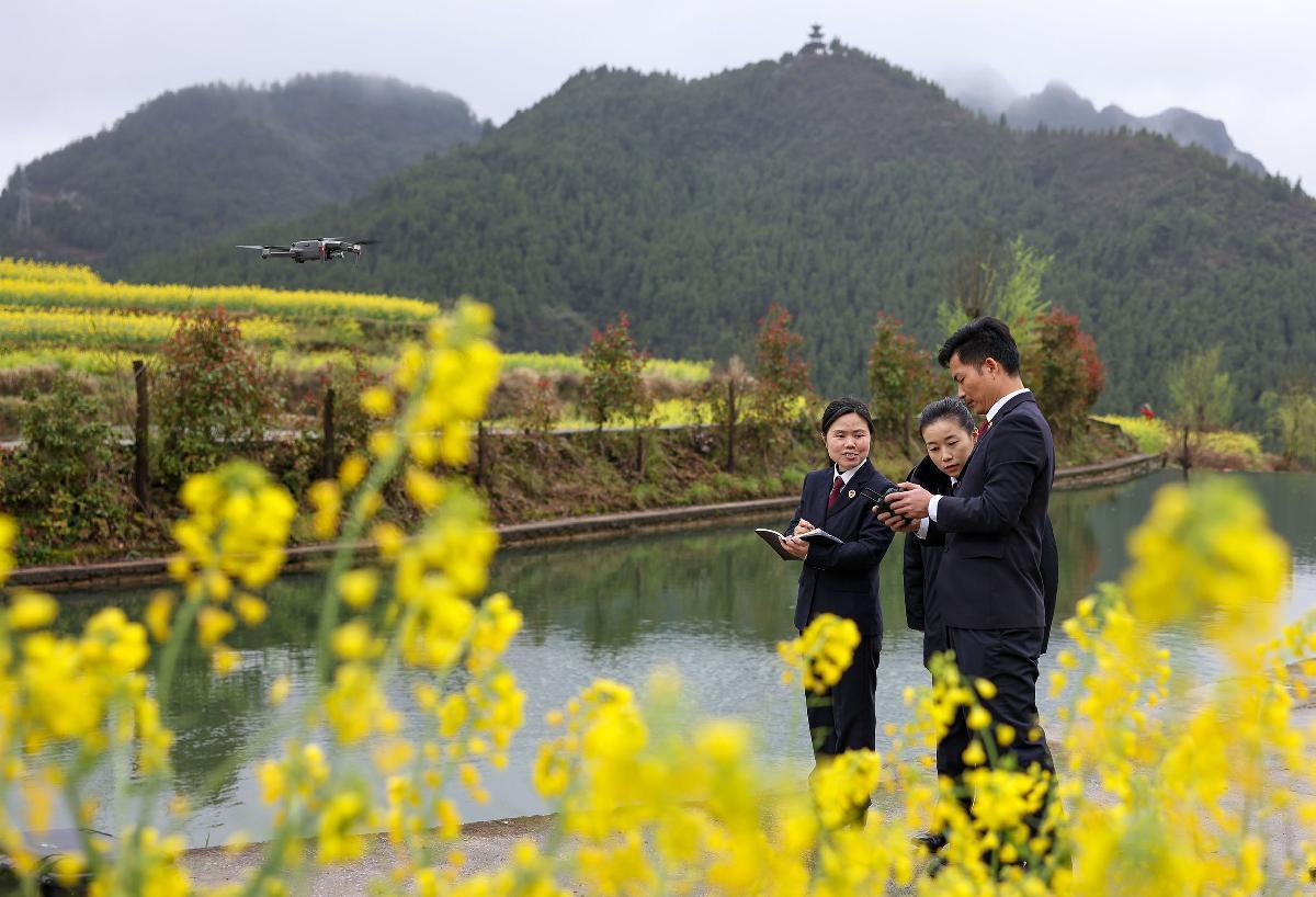 圖為檢察干警運(yùn)用無(wú)人機(jī)對(duì)轄區(qū)重點(diǎn)地段實(shí)施生態(tài)環(huán)境巡查取證。