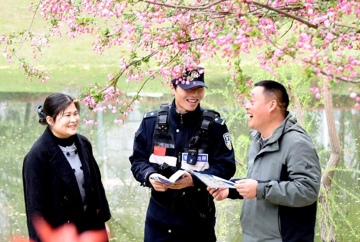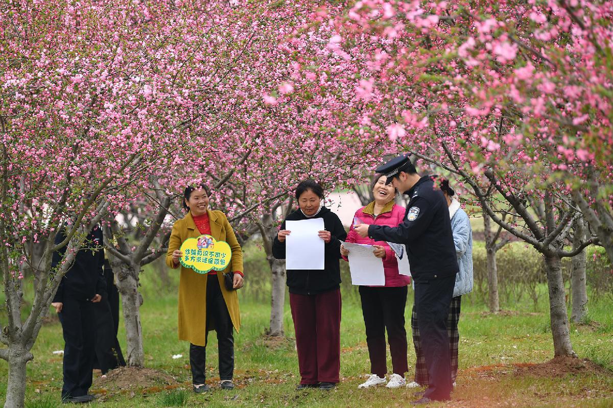 3月24日,安徽省亳州市渦陽(yáng)縣公安局民警向踏青賞花的市民宣傳安全防范知識(shí)。