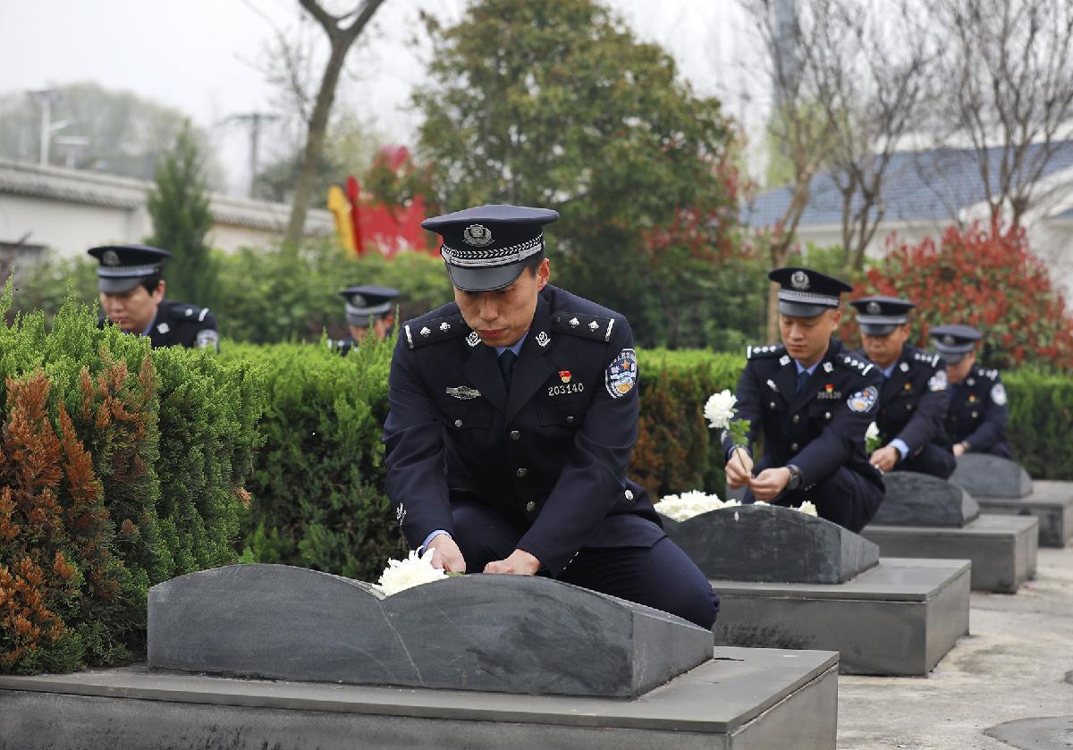 4月1日,安徽省合肥市公安局交管支隊(duì)組織民警輔警代表在大蜀山文化陵園開展清明祭掃活動(dòng)。