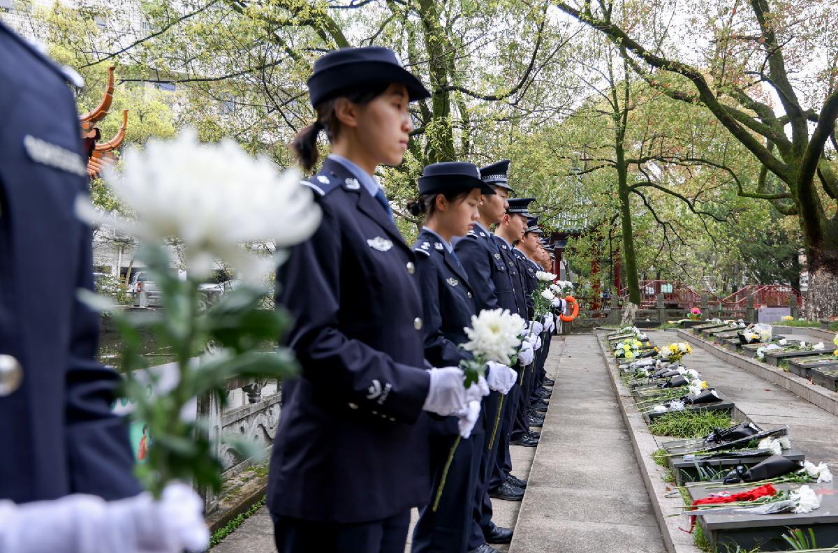 4月1日,浙江省湖州市長(zhǎng)興縣公安局組織民警前往烈士陵園開展祭掃活動(dòng),緬懷先烈事跡,重溫入警誓詞,鑄牢忠誠(chéng)警魂。