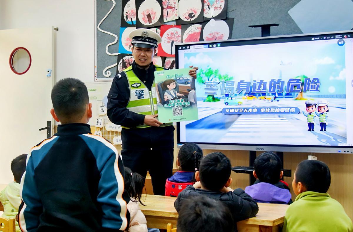 3月30日,安徽省亳州市公安局民警走進(jìn)開放大學(xué)附屬幼兒園,通過警示視頻、手勢操、兒歌等趣味互動,向萌娃們講解交通安全知識。