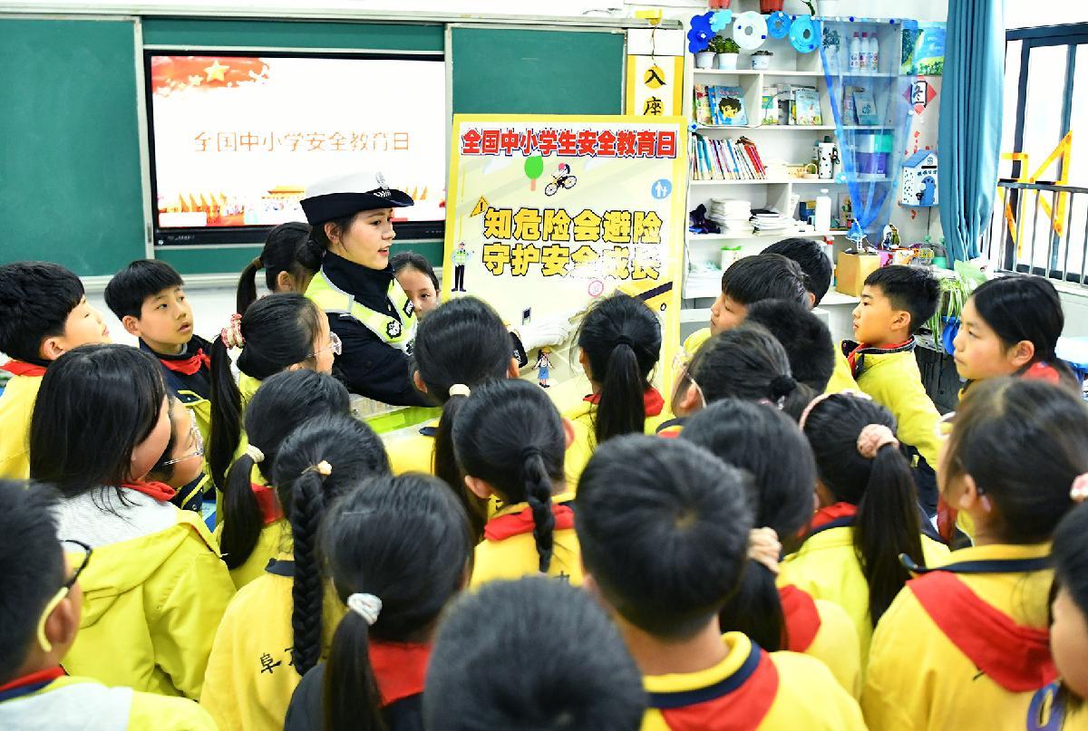 3月30日,安徽省阜南縣公安局交管大隊(duì)組織民輔警走進(jìn)轄區(qū)中小學(xué)校,開展全國中小學(xué)生安全教育日宣傳活動。