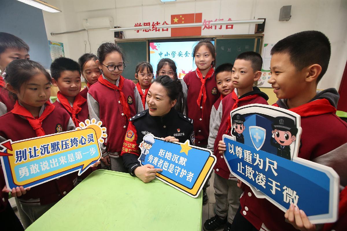 3月30日,江蘇省徐州市鼓樓區(qū)人民法院法官在第二十四中學(xué)為學(xué)生講解如何防范欺凌行為,增強(qiáng)學(xué)生安全防范意識和自我保護(hù)能力。