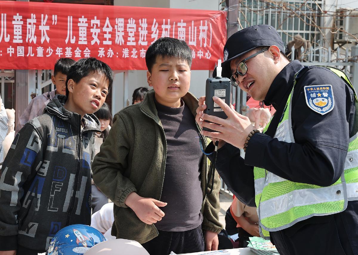 3月29日,安徽省淮北市婦女兒童活動中心聯(lián)合淮北市公安局交通管理支隊(duì)杜集大隊(duì),在杜集區(qū)南山村開辦“護(hù)苗行動”——兒童安全課堂,向兒童講授交通安全知識。
