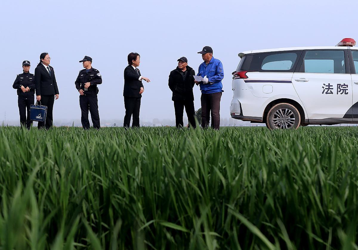 3月24日,河南省安陽縣人民法院呂村人民法庭法官深入轄區(qū)辛村鎮(zhèn)田間地頭,對一起土地租賃合同糾紛案進行實地勘驗,將司法服務延伸到春耕生產(chǎn)第一線。