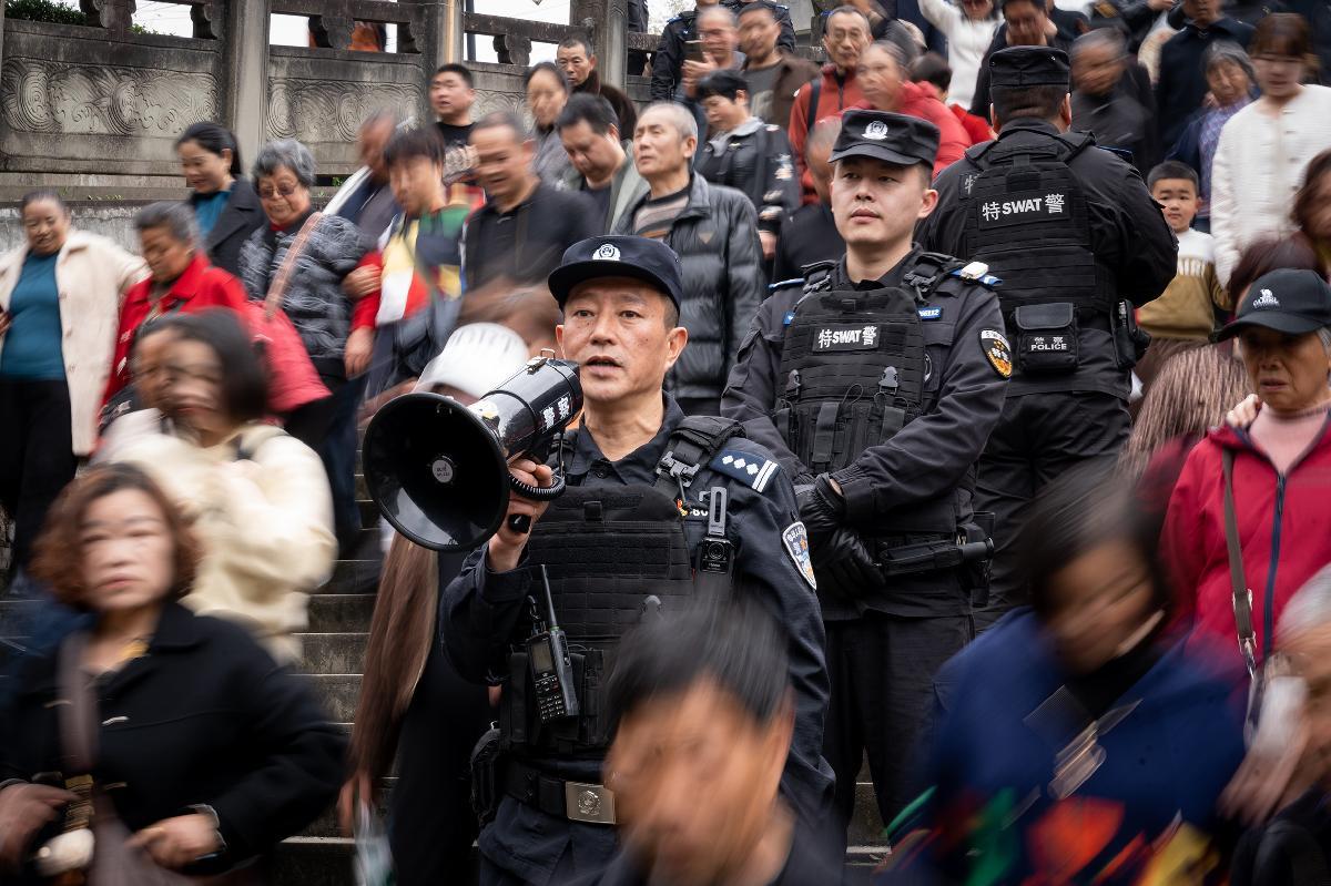 3月25日,四川省綿陽市公安局組織民輔警護航安州區(qū)“中國春社·雎水踩橋”民俗活動。