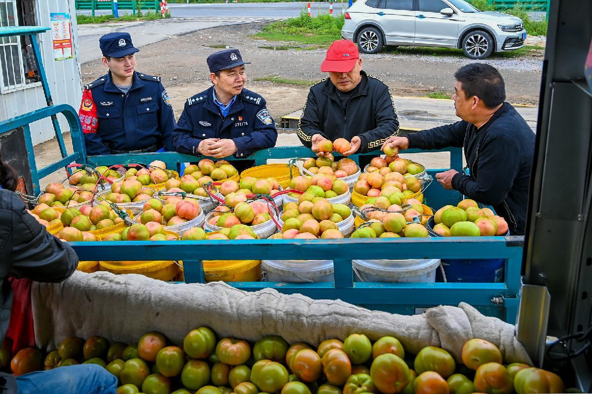 4月14日,安徽省馬鞍山市和縣公安局民警走訪菜農(nóng),了解春耕生產(chǎn)和果蔬銷售情況,并著力解決群眾所憂所盼。