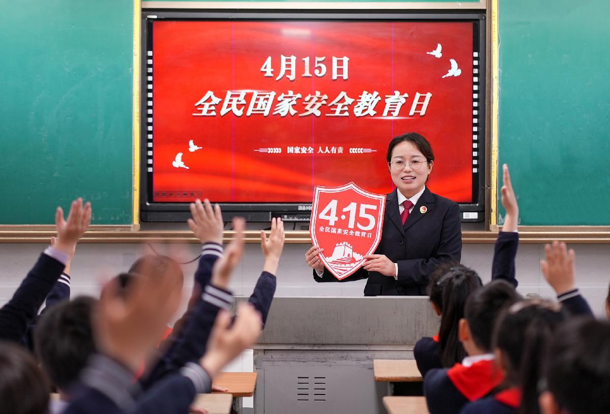 4月10日,浙江省長興縣公安局聯合所前社區(qū)組織縣第一小學學生和社區(qū)群眾開展“4·15”全民國家安全教育日主題宣傳。