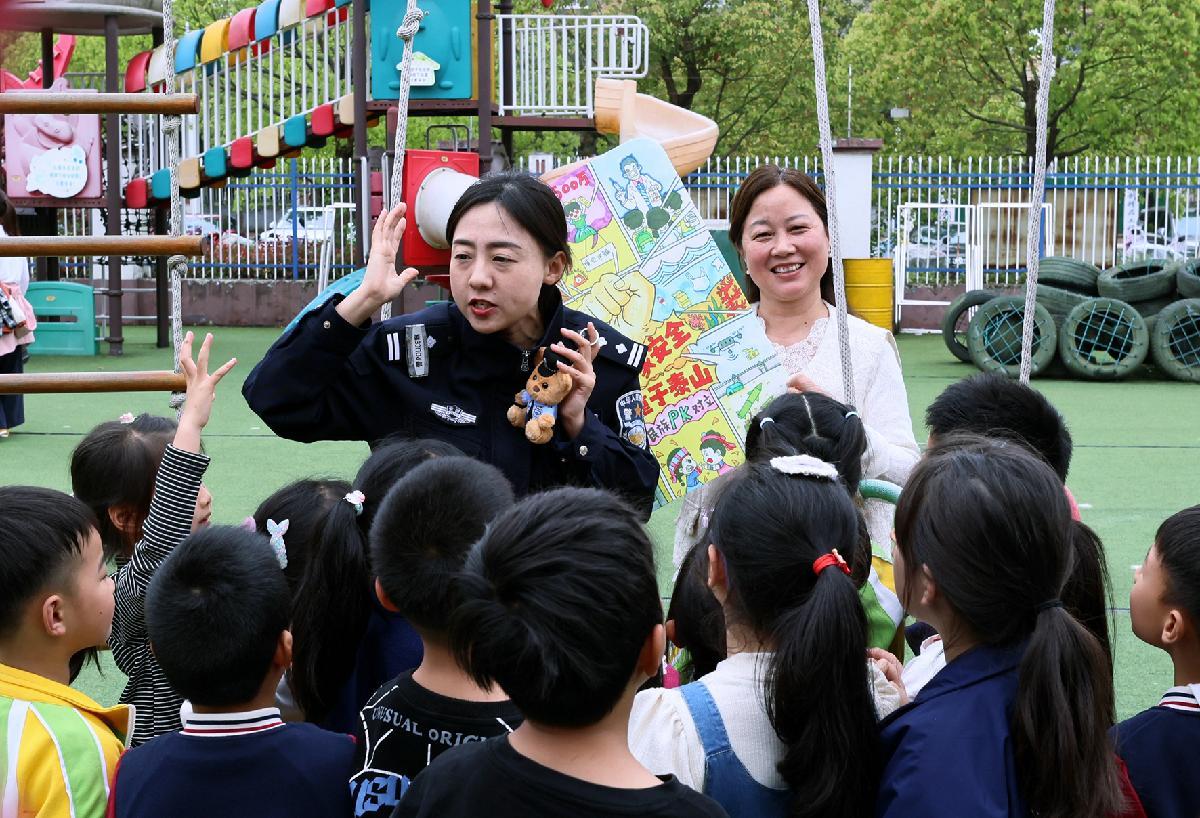 4月13日,安徽省寧國市公安局西津派出所金橋社區(qū)警務室民警走進轄區(qū)幼兒園開展主題宣傳活動。