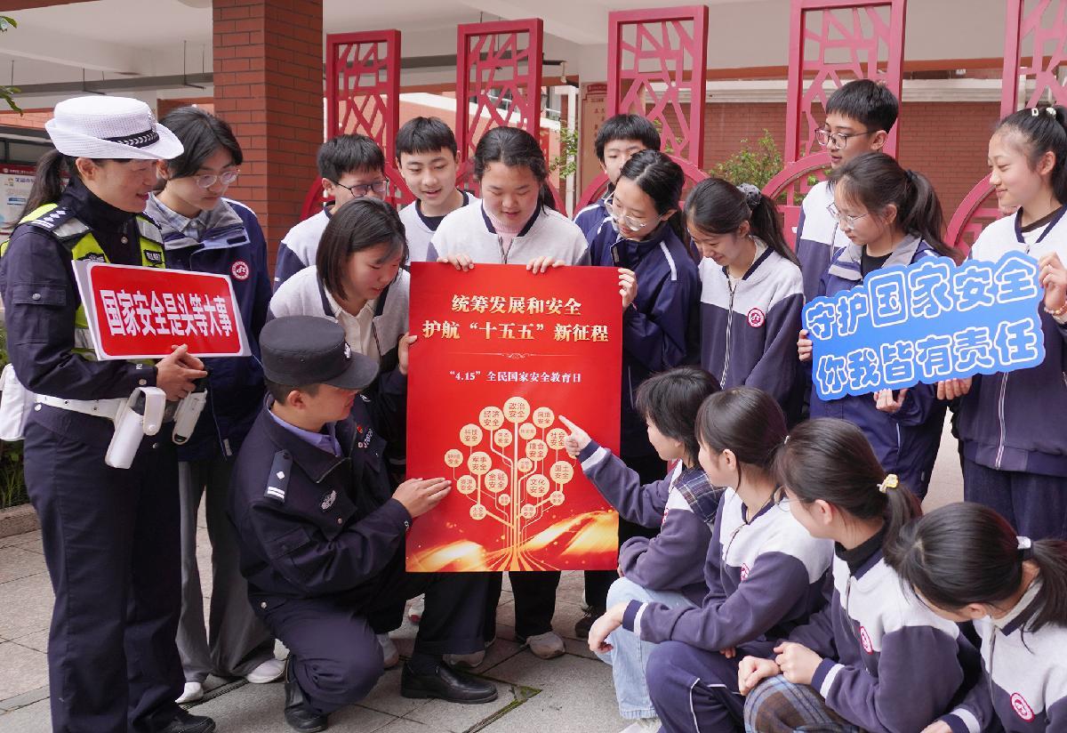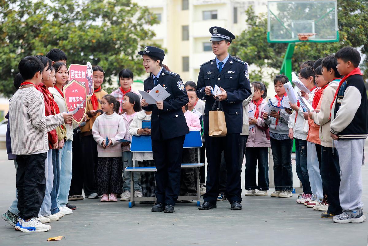 4月15日,在四川省綿陽師范學(xué)院,綿陽市公安局組織民輔警在學(xué)院廣場向?qū)W生講解國家安全相關(guān)知識(shí),增強(qiáng)學(xué)生國家安全意識(shí)和素養(yǎng)。