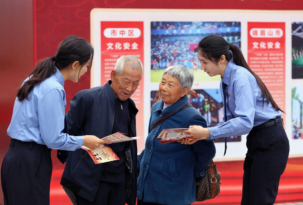 4月15日,四川省樂山市市中區(qū)人民檢察院工作人員為市民宣講國家安全知識(shí)。