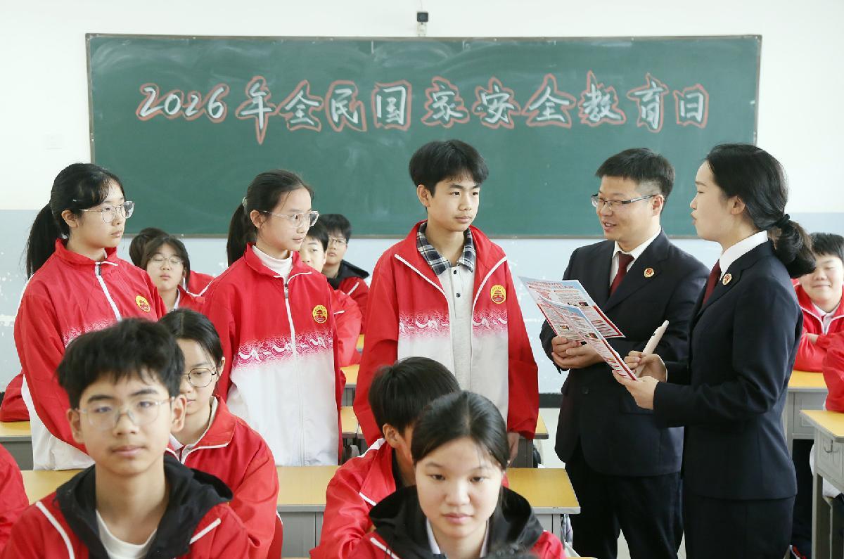4月14日,河南省汝陽縣人民檢察院干警為城關(guān)鎮(zhèn)第三初級中學(xué)學(xué)生上全民國家安全教育課。