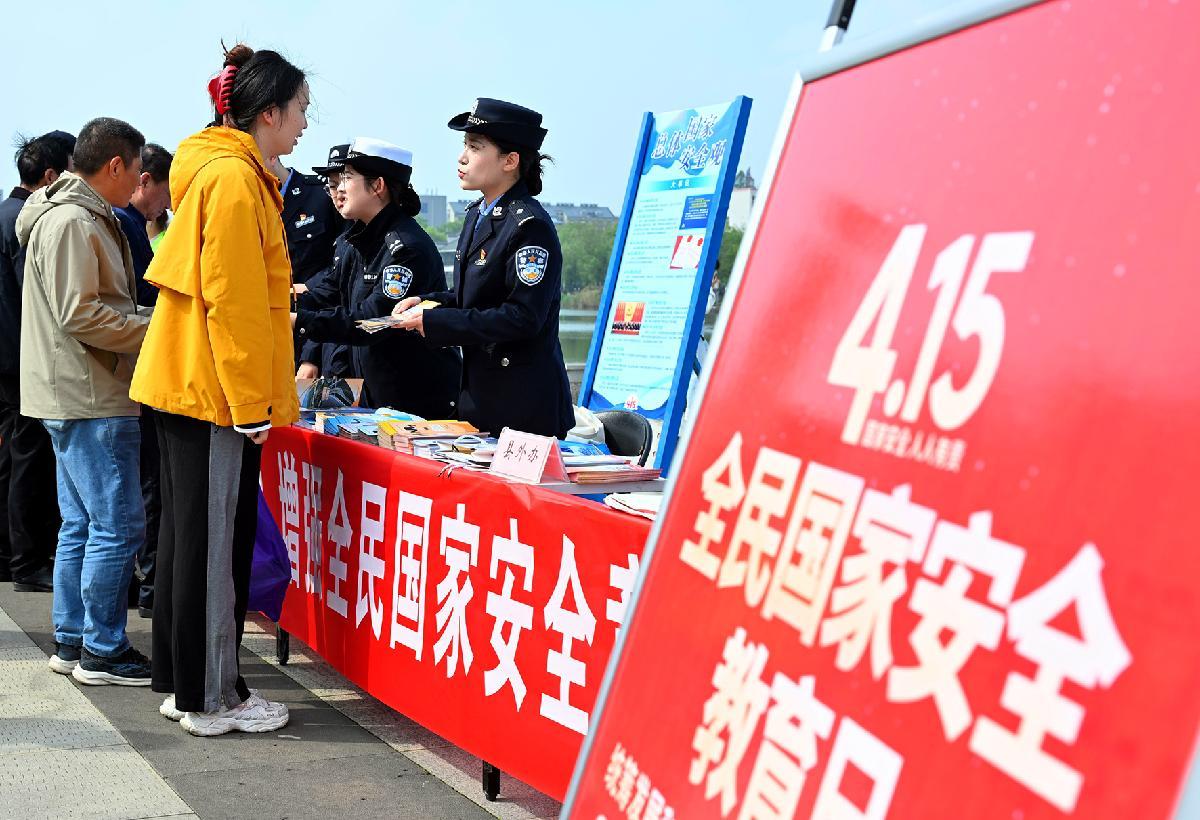 4月15日,安徽省亳州市公安局民警通過發(fā)放宣傳資料、面對面講解等形式,為群眾普及國家安全知識(shí)。