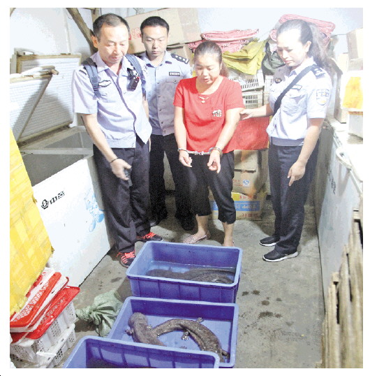 ▲ 犯罪嫌疑人正在向湖南省資興市森林公安民警指認(rèn)其無證銷售的野生娃娃魚。 本報(bào)記者 阮占江 本報(bào)通訊員 許志華 攝