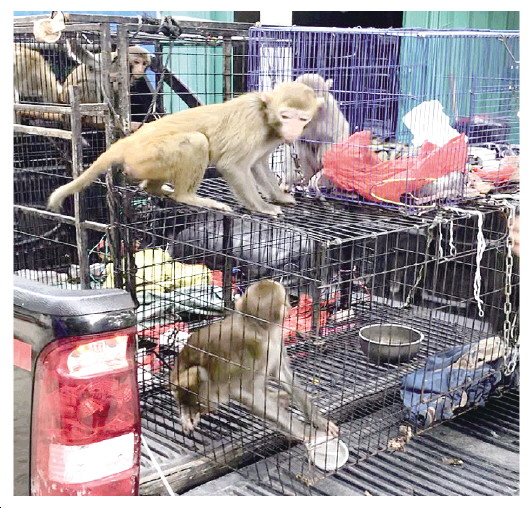 ▲ 海南省樂東黎族自治縣森林公安局解救了一批被非法獵捕的亞熱帶獼猴。 本報(bào)記者 邢東偉 本報(bào)通訊員 吳海青 攝