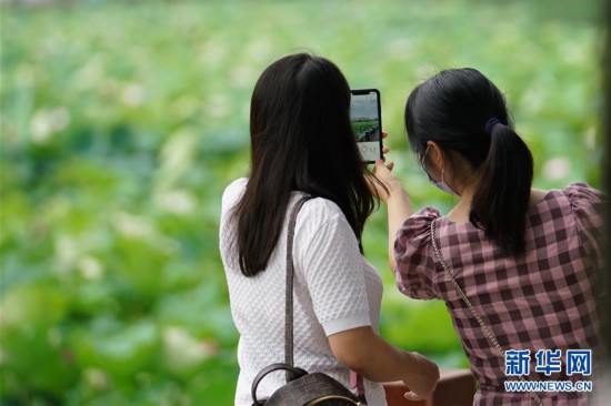 8月11日,游人在武漢東湖風景區(qū)拍照游覽。 新華社記者 馮國棟 攝