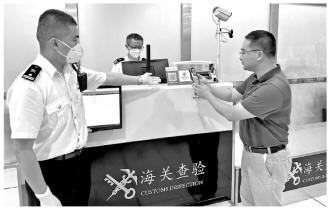 圖為旅客通過數(shù)字人民幣繳付行郵稅。 吳劍 攝