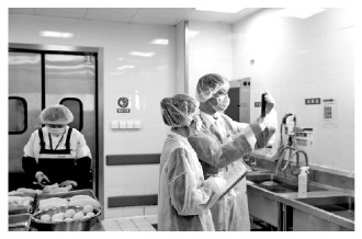 “航空食品具有供應鏈長、環(huán)節(jié)多等特點,保質(zhì)期又通常比較短。航食企業(yè)從采購、貯存到加工、綜合裝配、過渡冷藏,最終運送裝機,任何一個環(huán)節(jié)出現(xiàn)紕漏都可能影響食品的安全性。”南京祿口機場海關衛(wèi)生監(jiān)督科科長王斌介紹,為了讓廣大旅客吃得安心、吃得安全,除了現(xiàn)場進行檢查外,海關關員還會針對蔬菜農(nóng)藥殘留、食品中心溫度及食用油酸價等項目開展快速檢測,并對生產(chǎn)的食品隨機抽樣送實驗室檢測,以強化對食品生產(chǎn)經(jīng)營單位的監(jiān)管。