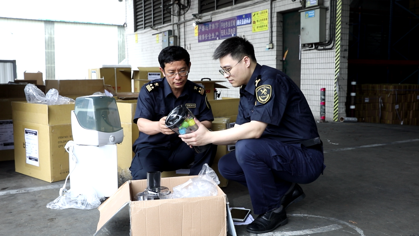 圖為:近日,廣州海關(guān)所屬海珠海關(guān)關(guān)員對(duì)廣交會(huì)進(jìn)境展品進(jìn)行監(jiān)管。