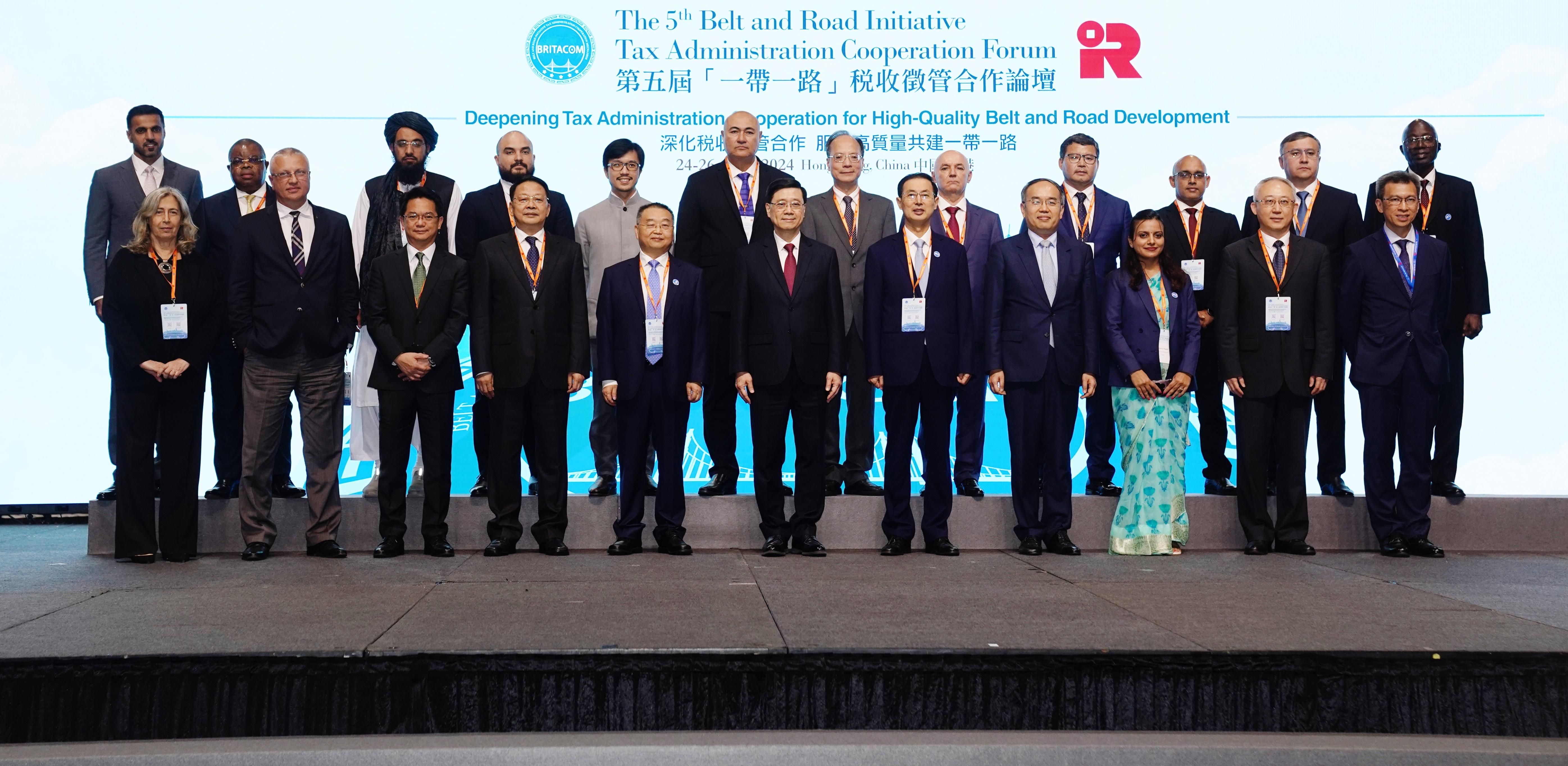 9月24日下午,第五屆“一帶一路”稅收征管合作論壇在香港亞洲國(guó)際博覽館開(kāi)幕,來(lái)自近50個(gè)國(guó)家和地區(qū)的稅務(wù)部門負(fù)責(zé)人,經(jīng)濟(jì)合作與發(fā)展組織、國(guó)際貨幣基金組織等13個(gè)國(guó)際組織,40余家中外跨國(guó)企業(yè)代表共500余人出席論壇。與會(huì)代表聚焦“深化稅收征管合作 服務(wù)高質(zhì)量共建‘一帶一路’”主題,共商“一帶一路”稅收合作美好未來(lái)。香港特別行政區(qū)行政長(zhǎng)官李家超出席開(kāi)幕式并致辭。中國(guó)國(guó)家稅務(wù)總局局長(zhǎng)胡靜林、上屆論壇主辦方格魯吉亞稅務(wù)局副局長(zhǎng)帕塔·基拉澤在開(kāi)幕式上發(fā)表主旨演講。