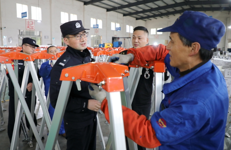 近日,江西省九江市公安局濂溪分局虞家河派出所民警輔警聯(lián)合市場監(jiān)管部門人員深入轄區(qū)企業(yè)進(jìn)行走訪和開展安全生產(chǎn)隱患排查,了解企業(yè)需求,并征求員工意見建議。圖為民警輔警和市場監(jiān)管部門人員走訪企業(yè)并開展安全生產(chǎn)隱患排查。 本報通訊員 游建棟 攝