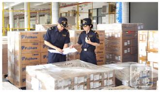 2024年5月31日,黃埔全球供應(yīng)鏈中心開始運行。一年來,該中心通過“物流鏈再造+數(shù)字化監(jiān)管”雙輪驅(qū)動,已形成“口岸直通+屬地監(jiān)管”模式,為粵港澳大灣區(qū)穩(wěn)鏈強鏈提供支持。圖為關(guān)員監(jiān)管黃埔全球供應(yīng)鏈中心貨物。 本報通訊員 傅可 攝
