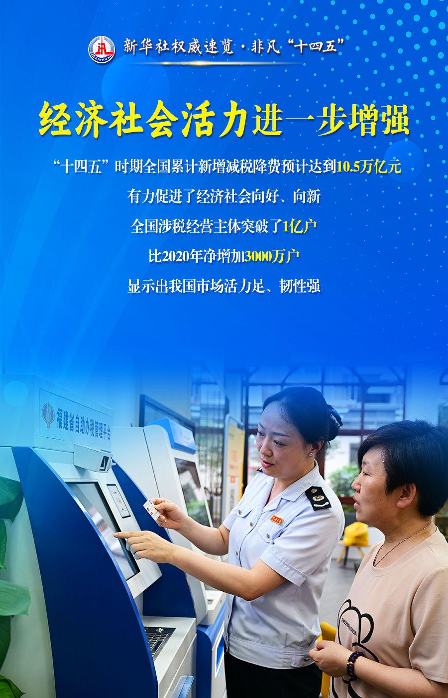 財(cái)力基礎(chǔ)進(jìn)一步壯大、經(jīng)濟(jì)社會活力進(jìn)一步增強(qiáng)、市場營商環(huán)境進(jìn)一步優(yōu)化……28日舉行的“高質(zhì)量完成‘十四五’規(guī)劃”新聞發(fā)布會上,國家稅務(wù)總局局長胡靜林說,“十四五”時期,我國稅收改革發(fā)展取得積極成果。通過這組海報(bào),一起來看看。