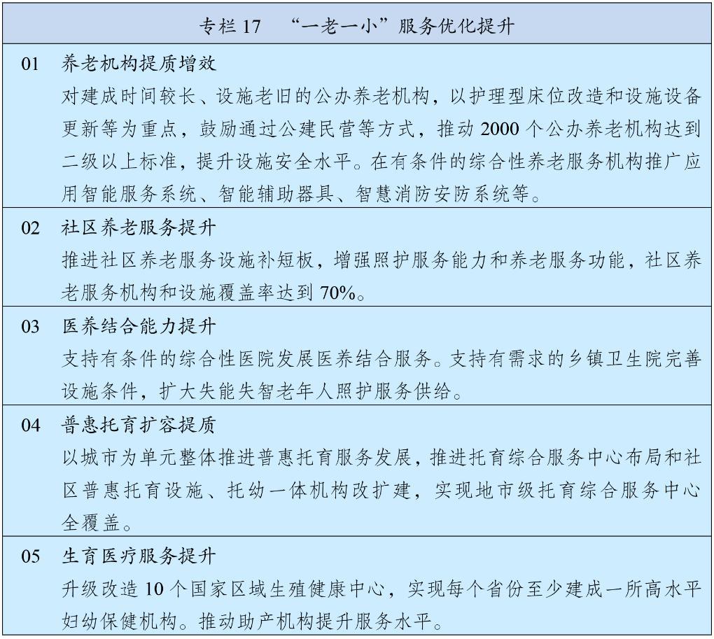 堅持兒童優(yōu)先發(fā)展,切實保障兒童生存權(quán)、發(fā)展權(quán)、受保護權(quán)和參與權(quán)。推進兒童近視、超重肥胖和孤獨癥等早篩查早干預。提高兒童醫(yī)療保健服務(wù)水平,豐富兒童用藥品種。加強困境兒童關(guān)愛服務(wù),推進流動兒童、留守兒童分類幫扶,有效提升福利保障水平。完善兒童早期發(fā)展服務(wù)。制定實施兒童傷害防控行動計劃,強化未成年人違法犯罪預防和治理,有效防治學生欺凌。加強未成年人網(wǎng)絡(luò)保護,拓展網(wǎng)絡(luò)育人空間和陣地。推進兒童友好建設(shè),營造關(guān)心關(guān)愛下一代的社會環(huán)境。