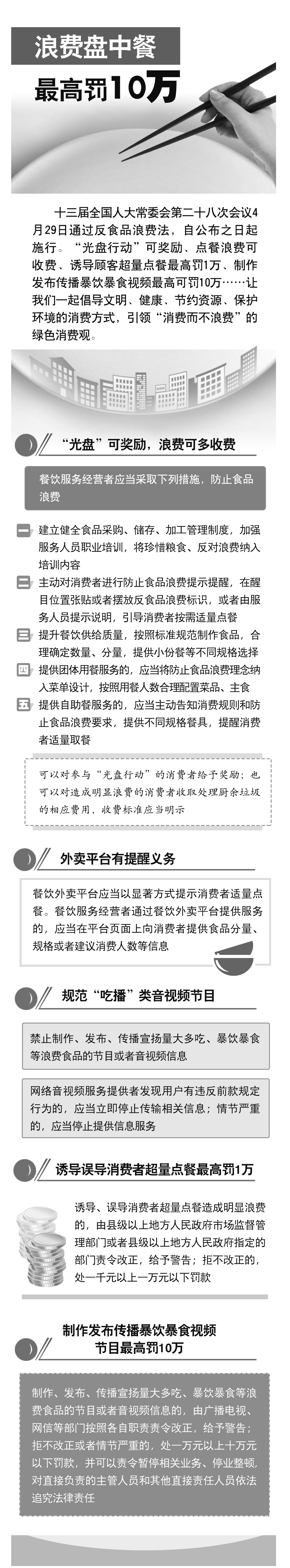 浪費(fèi)盤中餐 最高罰10萬(wàn)
