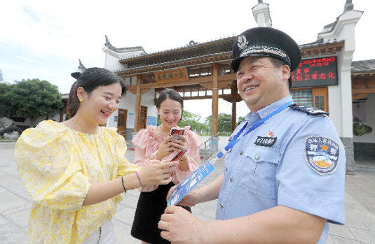 今年5月以來,湖北省荊門市公安機關(guān)全警上陣,深入政府部門、學(xué)校及社區(qū),推廣“國家反詐中心”App的安裝,從源頭切斷電信網(wǎng)絡(luò)詐騙“黑手”,最大程度減少人民群眾財產(chǎn)損失。圖為6月8日,在荊門市鳳凰湖公園,荊門市公安局漳河新區(qū)分局民警邀請市民掃描胸前佩戴的“國家反詐中心”App二維碼。