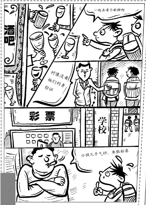 第五十九條 學(xué)校、幼兒園周邊不得設(shè)置煙、酒、彩票銷售網(wǎng)點(diǎn)。禁止向未成年人銷售煙、酒、彩票或者兌付彩票獎(jiǎng)金。煙、酒和彩票經(jīng)營者應(yīng)當(dāng)在顯著位置設(shè)置不向未成年人銷售煙、酒或者彩票的標(biāo)志;對難以判明是否是未成年人的,應(yīng)當(dāng)要求其出示身份證件。
