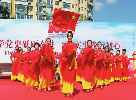 建黨百年,老百姓也迎來了高興的節(jié)日,大家歡喜雀躍,愛黨之情溢于言表。圖為長春市陽光社區(qū)開展的慶祝建黨百年活動。(記者吳茗 攝)