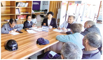 圖為楊立娟(左三)正在接待來(lái)訪群眾。