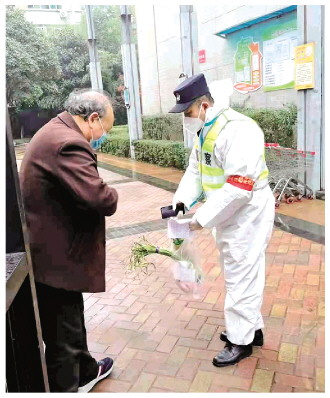 勞動二社區(qū)是大型國有企業(yè)西電公司的老家屬院,沒有電梯,老年人、殘疾人比較多,上下樓不方便。社區(qū)和物業(yè)防護(hù)器材都很缺乏,民警劉華侃利用防護(hù)裝備齊全的優(yōu)勢,擔(dān)任了義務(wù)送菜員,給下樓不方便的老人義務(wù)送菜。