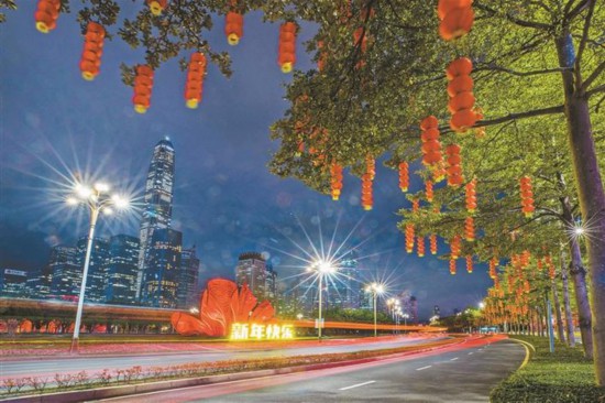 深南大道水晶島裝飾得紅紅火火。 深圳特區(qū)報記者 李忠 攝