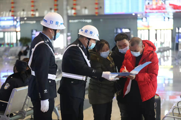 今年春運(yùn)期間,為進(jìn)一步提升鐵警執(zhí)法為民形象,山西大同鐵路警方警務(wù)督察人員深入旅客群眾中,對(duì)民警履職盡責(zé)、執(zhí)法形象、為民服務(wù)等情況開(kāi)展實(shí)地檢查與民意調(diào)研,切實(shí)了解實(shí)情,掌握旅客群眾需求,讓旅客出行體驗(yàn)更美好。圖為警務(wù)督察人員調(diào)研民意。