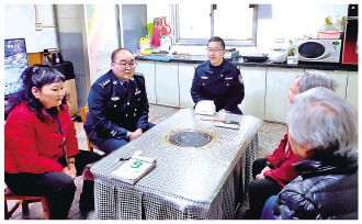 圖為任一可(左二)到社區(qū)居民家中進行走訪,了解治安情況,收集意見。