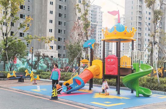 居民百姓樂享舊改成果,圖為金色橄欖城三期兒童游樂設施。(資料圖片)