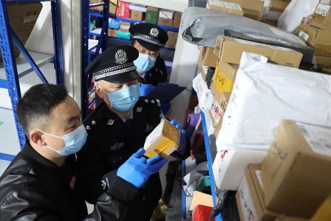 為加強寄遞渠道治安管理工作,提升寄遞行業(yè)疫情防控能力,3月17日,安徽省舒城縣公安局城南派出所民警對轄區(qū)寄遞行業(yè)網(wǎng)點進行了安全檢查。民警重點檢查工作場所的疫情防控、收寄快件消毒以及個人防護工作,落實快件實名收寄、收寄驗視、安全防范等相關制度執(zhí)行情況。圖為民警查驗收寄件落實相關安全制度情況。