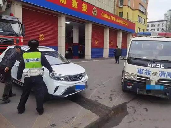 可通過“114”一查,這位車主留的號(hào)碼竟然是“空號(hào)”。無奈,十緯路消防救援站站長(zhǎng)王軍立即聯(lián)系交警部門。交警到場(chǎng)后,依然聯(lián)系不上該私家車車主,最終果斷聯(lián)系拖車,對(duì)此車輛進(jìn)行了強(qiáng)行拖離暫扣。