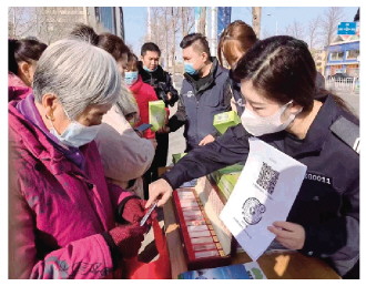 圖為蔣麗麗在集市開(kāi)展禁毒宣傳。