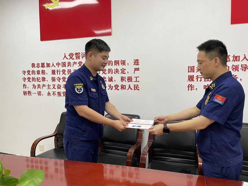 預(yù)備黨員周亞超即將于5月28日轉(zhuǎn)正,在這個特殊節(jié)點,他感觸頗深:“成為預(yù)備黨員以來,我深刻感受到了作為黨員的責(zé)任和要求,我將更加注重工作方法,虛心向老黨員學(xué)習(xí),做好本職工作,不斷爭先創(chuàng)優(yōu),發(fā)揮好模范帶頭作用……”“希望周亞超同志不忘入黨初心,牢記黨的宗旨,增強黨員意識,奮發(fā)有為,勇于擔當,在為黨和人民事業(yè)不斷作出貢獻的同時,書寫好自己的人生華章。”指導(dǎo)員高鵬翔說。