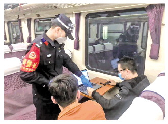 黨員馬耀成是北京大隊第四警組乘警長,與90后畢寬寬搭檔。突發(fā)疫情后,馬耀成主動找到大隊領(lǐng)導表態(tài):“畢寬寬還年輕,也沒有結(jié)婚成家,如果值乘途中發(fā)現(xiàn)疑似病例,我一個人去,不會讓寬寬去!”
