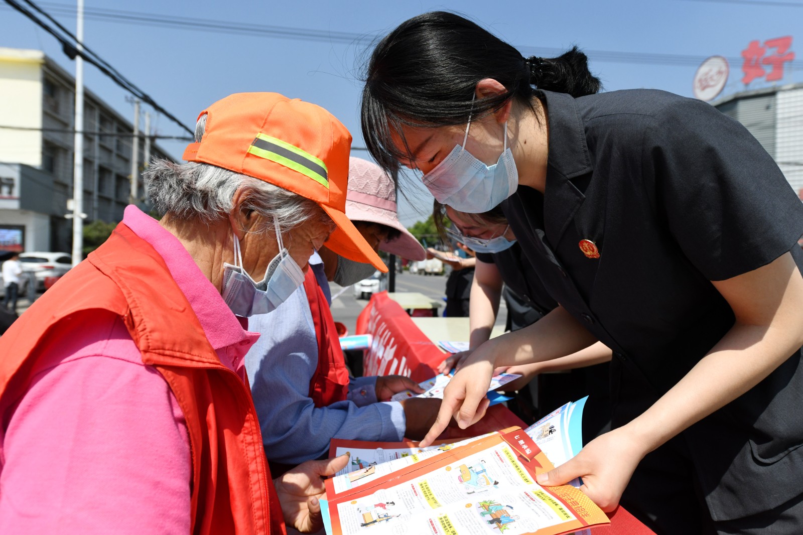 今年5月是第二個民法典宣傳月,安徽省宿州市埇橋區(qū)人民法院積極組織工作人員編印材料、攜帶展板、懸掛標(biāo)語,聯(lián)合轄區(qū)鄉(xiāng)鎮(zhèn)派出所、綜治辦等部門迅速掀起“美好生活·民法典相伴”普法鄉(xiāng)村行活動,提升群眾學(xué)法、反詐意識,讓民法典真正走到群眾身邊,融入百姓生活。圖為5月20日,在埇橋區(qū)符離鎮(zhèn),法官向群眾講解防詐騙常識。