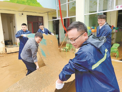 近日,貴州省織金縣出現(xiàn)特大暴雨天氣,造成部分地區(qū)發(fā)生洪澇災(zāi)害。織金縣檢察院迅速派出30余名檢察干警組成應(yīng)急救援隊(duì),參與搶險(xiǎn)救援和災(zāi)后恢復(fù)工作。圖為檢察干警在該縣熊家場鎮(zhèn)參與清理校舍。記者張安 通訊員邱峰 攝