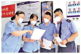 還沒來得及進行工作分工,所里的電話就開始響個不停?!奥犝f你們不能現(xiàn)場辦公了,營業(yè)執(zhí)照去哪里辦理?”“我們還能不能開門營業(yè)?現(xiàn)在是什么政策?”“不在管控區(qū)域的是不是也要關門?我們該怎么辦?”王麗俠一面讓劉瑩安撫來電人的情緒,一面把問題都記錄下來,梳理匯總后向上級匯報,并逐個回電話,第一時間把準確的疫情防控政策回復給大家。