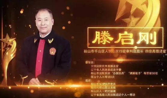 【人物簡介】 滕啟剛,中共黨員,生前為遼寧省鞍山市千山區(qū)人民法院行政審判庭庭長、四級高級法官。在法院工作31年間,先后從事刑事審判、民事審判、信息化管理、行政審判等工作。2021年6月4日,在家中因突發(fā)腦出血搶救無效去世,終年57歲,同年11月被遼寧省委宣傳部追授“遼寧時代楷?!睒s譽稱號。